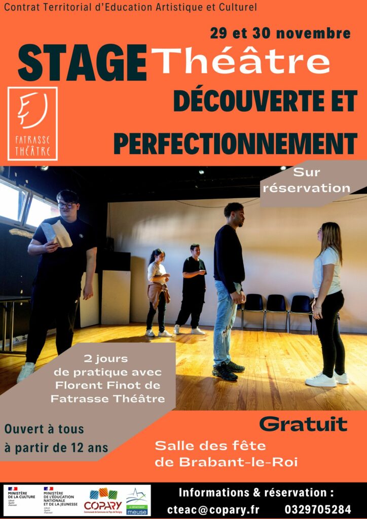 Un stage de théâtre est proposé les 29 et 30 novembre à la salle des fêtes de Brabant-le-Roi.
